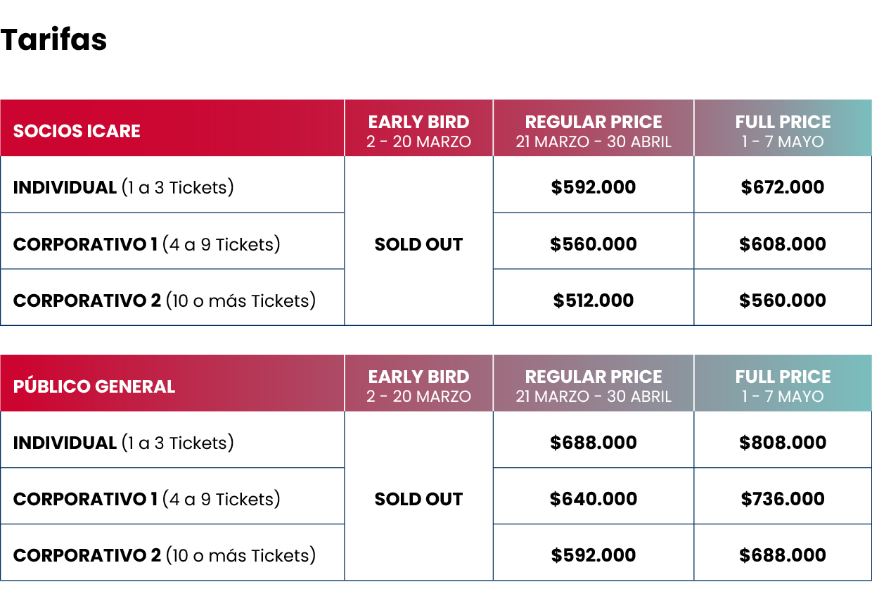 SOCIOS ICARE - 4 a 9 Tickets - Regular Price $ 560.000 CLP | 0 |