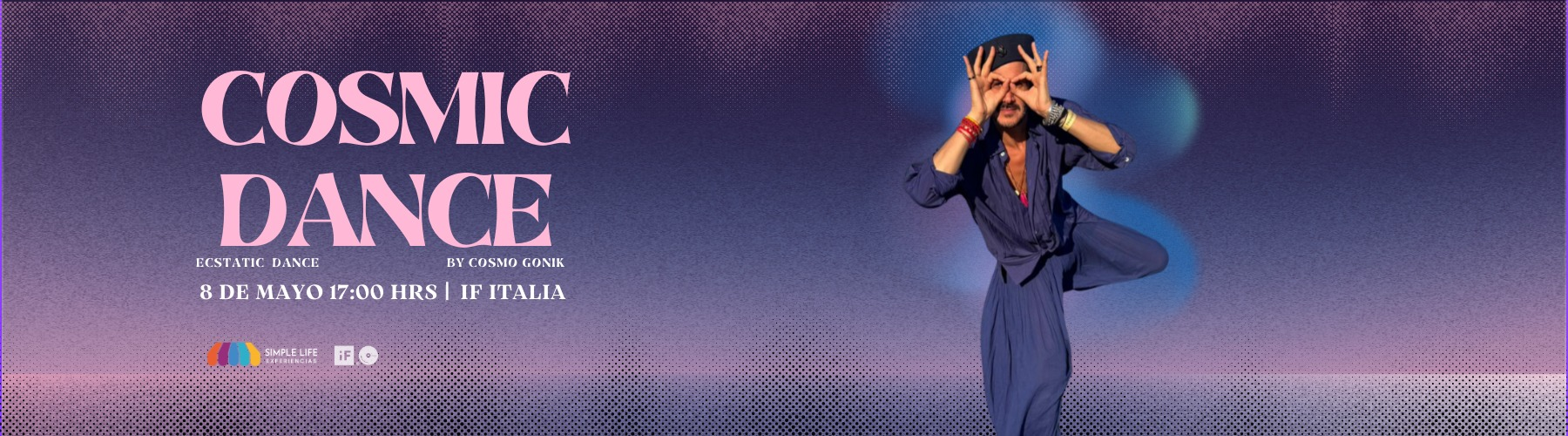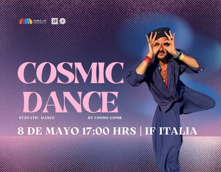 Cosmic Dance no es una clase de baile ni un espectáculo. Es un viaje vivencial donde la música, el cuerpo y la energía colectiva abren la puerta a una experiencia de libertad, conexión y transformación.