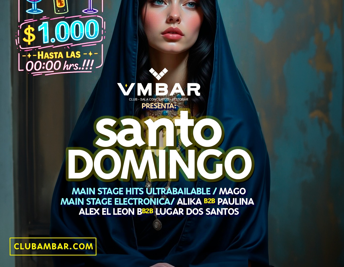 DOMINGOS SANTOS Y SE BAILA EN CLUB AMBAR / MAIN STAGE HITS ULTRABAILABLE Y 1 PISTA ELECTRONICA + TERRAZA FUMADORES