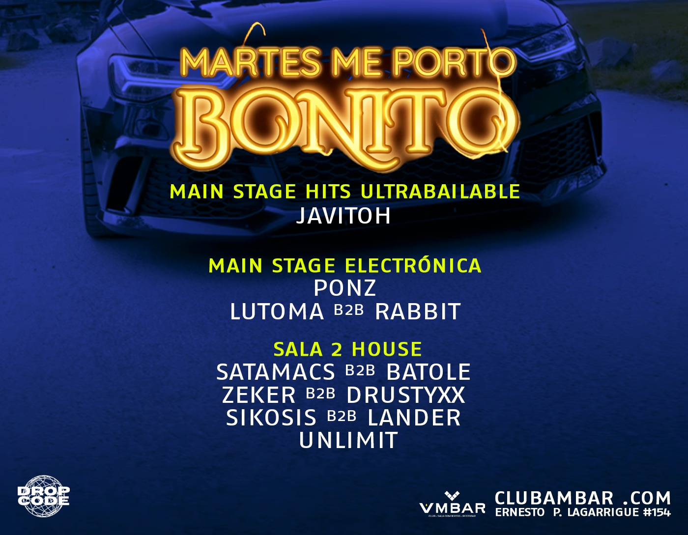 MARTES ME PORTO BONITO EN CLUB AMBAR / MAIN STAGE HITS ULTRABAILABLE Y 1 SALA ELECTRONICA