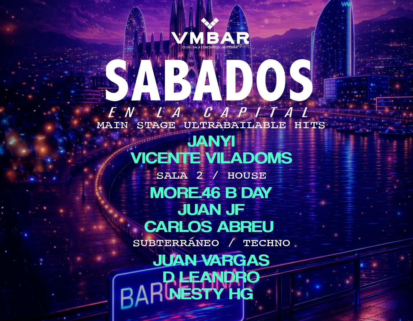 SABADOS EN LA CAPITAL Y SE VIVE EN CLUB AMBAR / MAIN STAGE HITS ULTRABAILABLE Y 2 PISTAS ELECTRONICAS