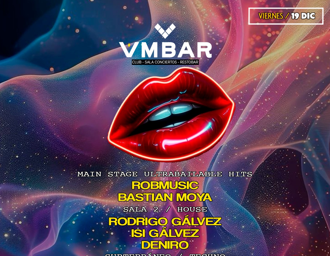 VIERNES ALA SEGURA EN CLUB AMBAR / MAIN STAGE HITS ULTRABAILABLE / 2 PISTAS DE ELECTRONICAS/ TERRAZA FUMADORES
